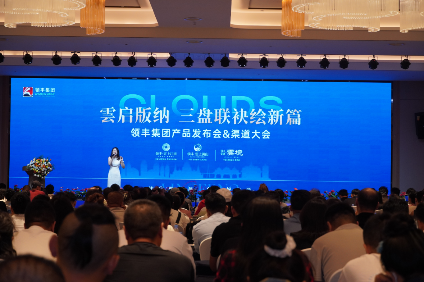 在領(lǐng)導(dǎo)致辭后,領(lǐng)豐集團(tuán)副總經(jīng)理王玉梅總登臺(tái),詳細(xì)介紹了領(lǐng)豐·雲(yún)上江南、雲(yún)上瀾山和雲(yún)境三項(xiàng)目的產(chǎn)品設(shè)計(jì)以及項(xiàng)目規(guī)劃亮點(diǎn),并向所有渠道伙伴鄭重闡述了領(lǐng)豐的合作理念:“我們始終堅(jiān)信,在領(lǐng)豐,每一位經(jīng)紀(jì)人都是我們并肩前行的伙伴與戰(zhàn)友。